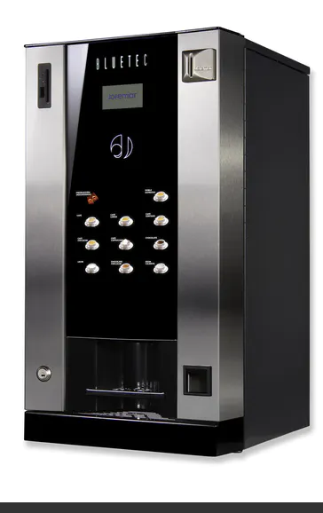 دستگاه وندینگ نوشیدنی مدل Jofemar Bluetec دستگاهی با صفحه لمسی می باشد که مجهز به سیستم آسیاب دانه قهوه اروپایی بوده و 9 تنوع نوشیدنی با کیفیت ارائه می دهد. این دستگاه در طبقه بندی دستگاه های رومیزی قرار داشته و جزو پرفروش ترین دستگاه های نوشیدنی گرم دنیا به شمار می آید.ظاهر شکیل و نوشیدنی های حرفه ای این دستگاه از نقاط قوت و تمایزات آن بشمار می آید.